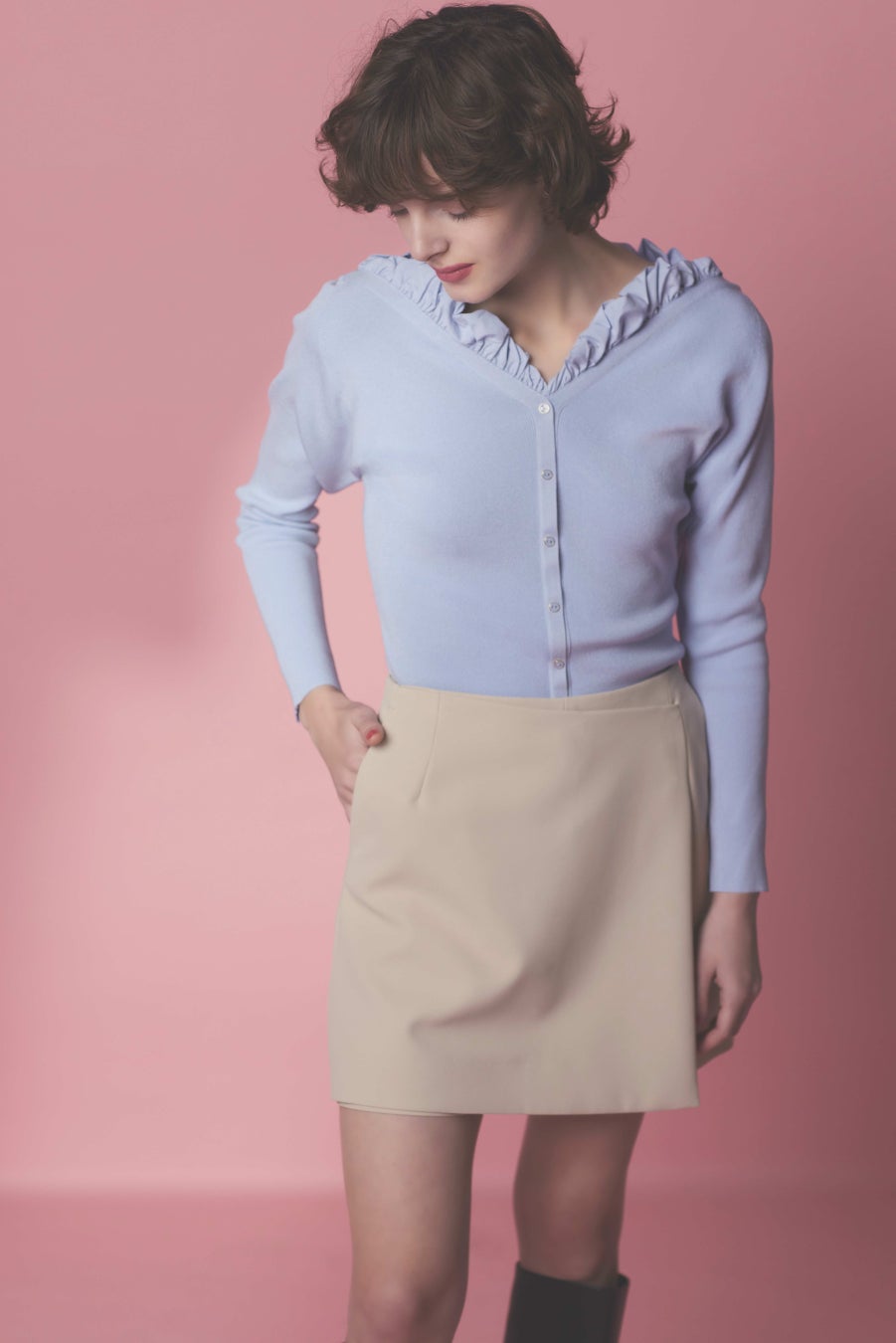 デコルテラインを綺麗に見せるハートネックデザインから着想したニットプルオーバー。キャッチーでありながら日常にも取り入れやすいアイテムです。 襟元はシンプルなVネックとしても、デコルテを美しく見せるオフショル風に着用することも可能。さらに前後2Wayでもお楽しみいただけます。