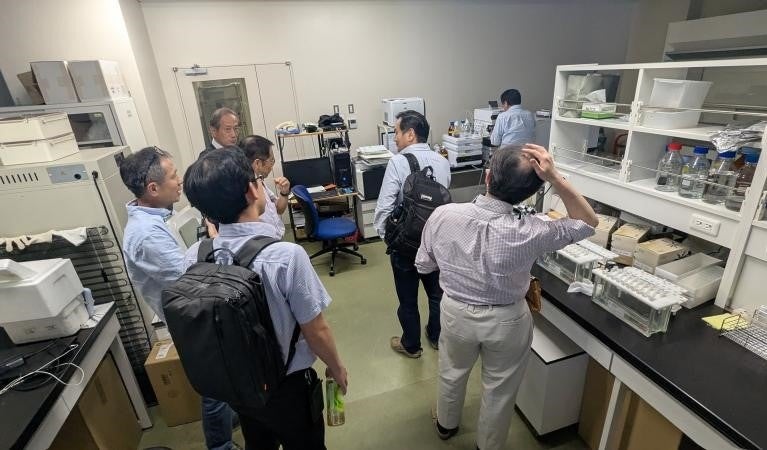 ミーティング後には資源植物科学研究所内の実験室見学を行った後、同じく所内の孫三郎ラウンジにて交流会を開催し、研究者同士の相互理解を深めるとともに、異分野間での対話のきっかけとなりました。