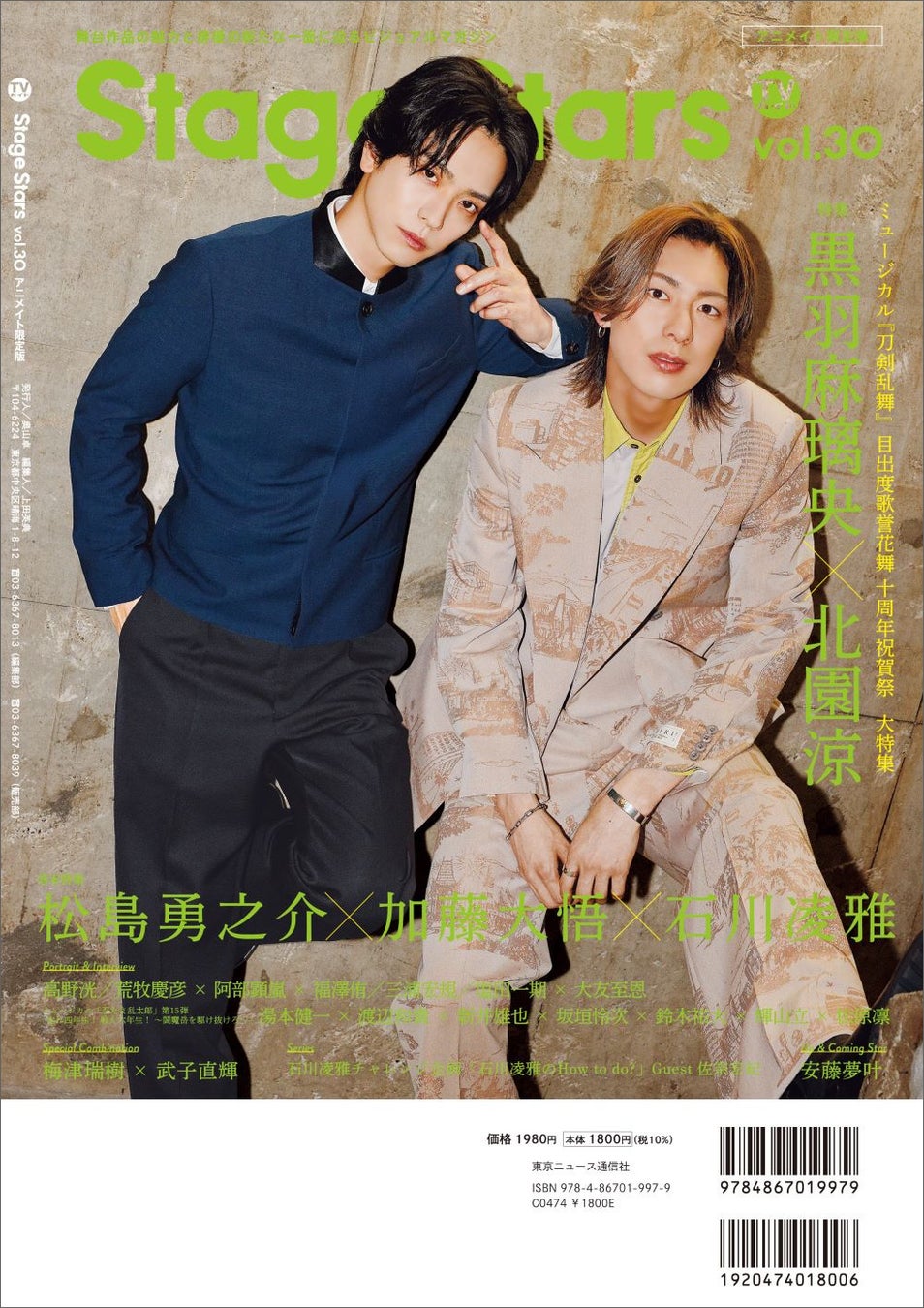ミュージカル『刀剣乱舞』 目出度歌誉花舞 十周年祝賀祭より黒羽麻璃央×北園涼が表紙を飾る「TVガイドStage Stars vol.30」発売!!