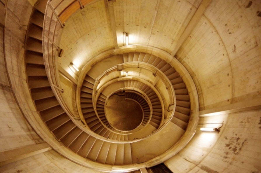 多摩川をせき止めた白丸ダムに設けられた全長約331mの魚道。高低差約27mを地下トンネルでつなぎ、管理棟内の螺旋(らせん)階段を降りて探検気分で見学できます。展望台や堤体からの眺望も魅力で、自然と人工構造物が融合した独特の空間を楽しめます。見学は4~11月の土日祝と夏季毎日、予約不要・無料です。