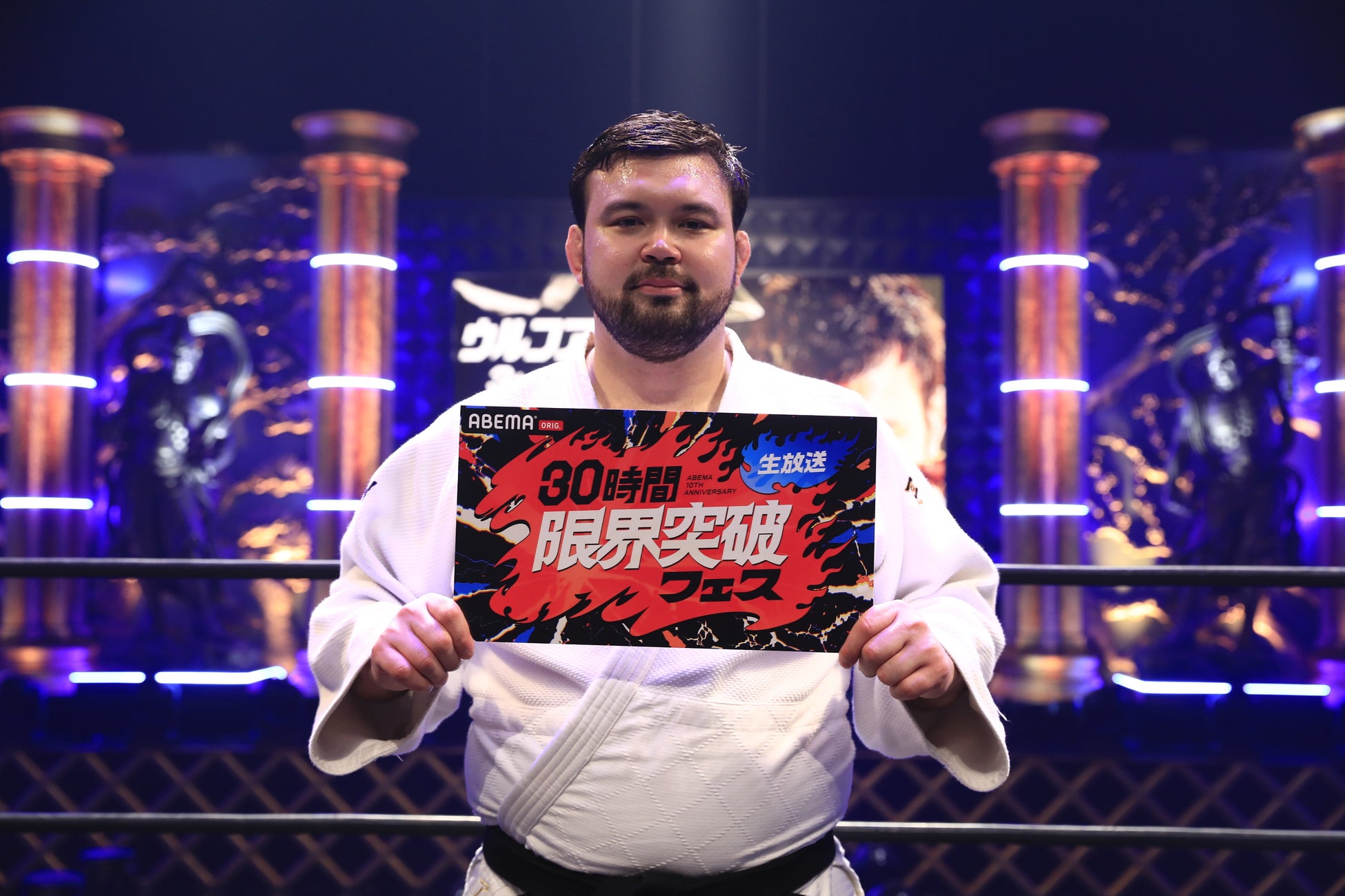 そして『30時間限界突破フェス』の目玉企画として、柔道選手からプロレスラーに転身したウルフアロンが参戦し話題を集めた『ウルフアロンから3カウント取ったら1000万円』を、4月11日(土)の午後3時30分より第1部、そして夜9時より第2部を放送。2021年放送の『朝倉未来にストリートファイトで勝ったら1000万円』以来、5年ぶりとなる「1000万円シリーズ」となり、ルールは4分一本勝負とし、「マットに背中をつけて3カウントを奪う」または「投げ技で一本を取る」ことで勝利となります。なお、すべての打撃技、関節技、締め技および急所への攻撃、噛みつき行為は禁止となり、双方が柔道着を着用します。