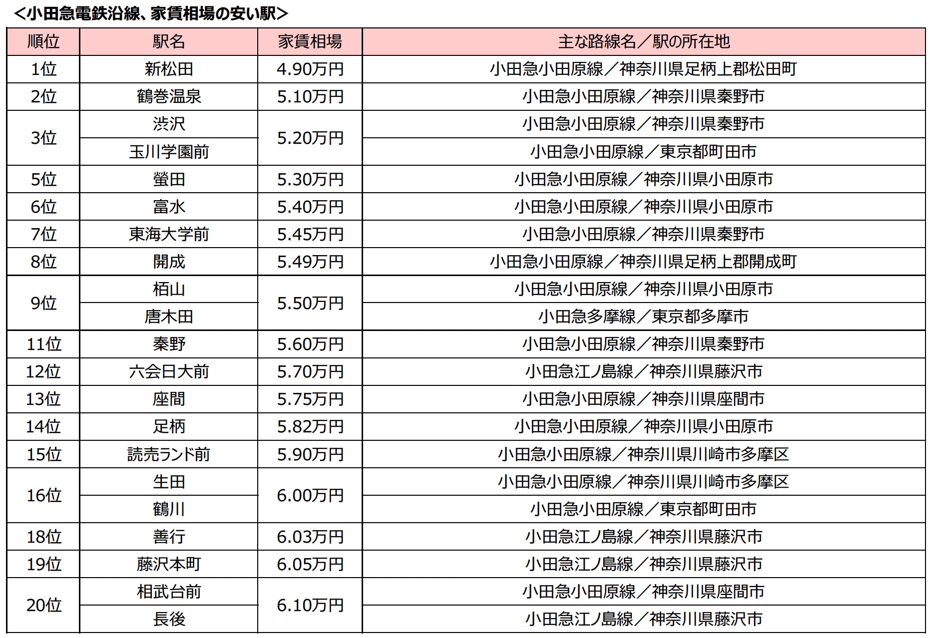 【調査対象駅】SUUMOに掲載されている小田急線の駅(掲載物件が20件以上ある駅に限る)