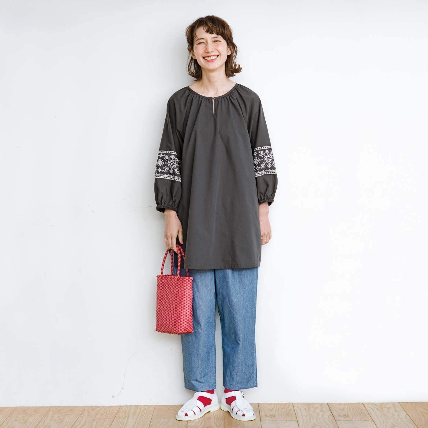 華やかなクロスステッチのチュニックプルオーバーは、体のラインをすっきり見せ、目を引くスタイルを提供します。九分袖は冷房対策にも適し、秋冬にはタートルネックとの重ね着が可能で、腰まわりをすっぽりカバーする丈は動きやすさを追求したつくりです。着心地の良さと同時に、おしゃれを提供し、さまざまなシーンでのスタイリングを豊かにします。