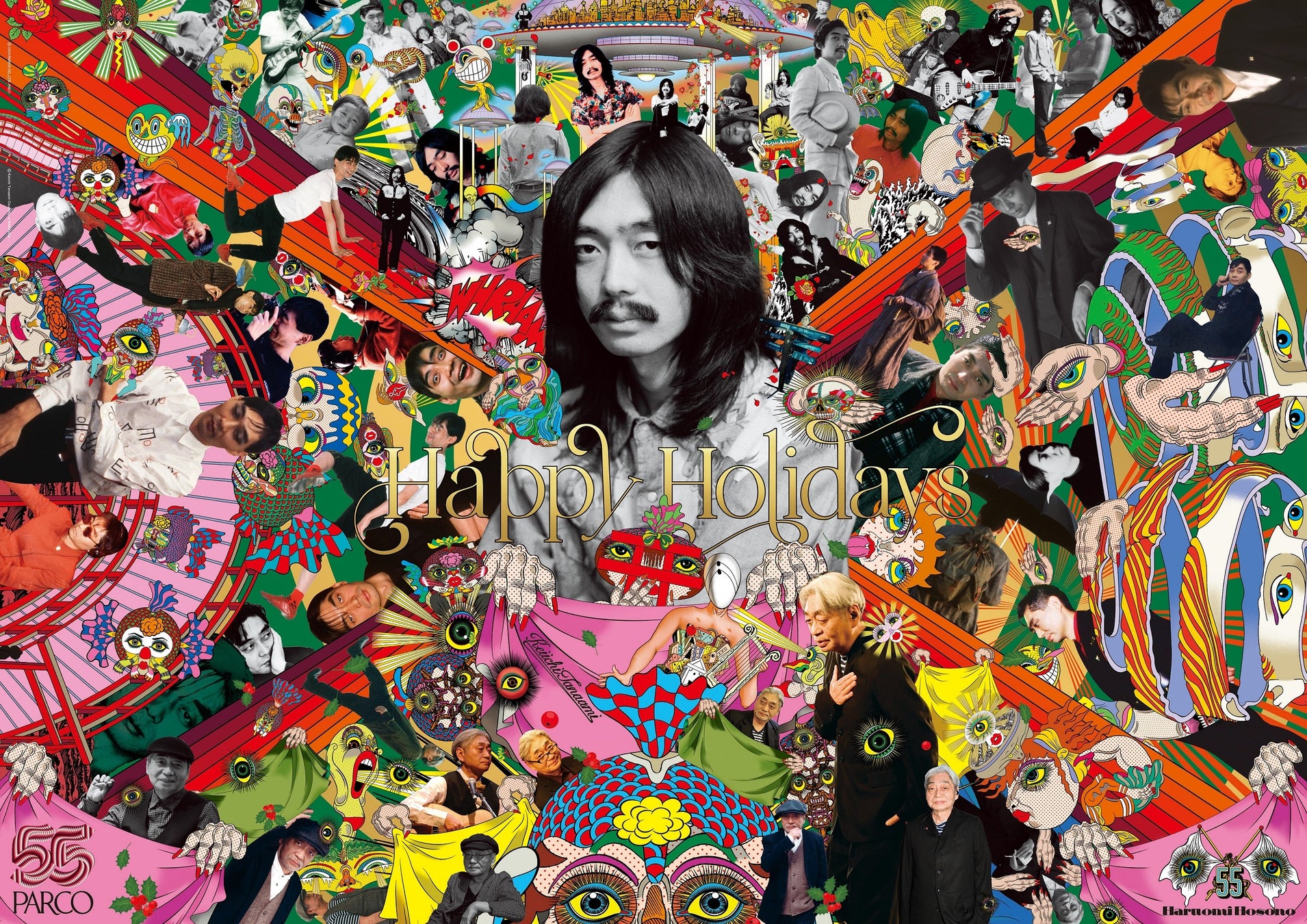 株式会社パルコ(本部:東京都渋谷区/以下、パルコ)は、パルコ開業55周年特別企画として、今年デビュー55周年を迎えた細野晴臣氏×今年生誕88年である田名網敬一氏×田名網氏の一番弟子である宇川直宏氏による「HAPPY HOLIDAYSキャンペーン」広告を制作・公開しました。