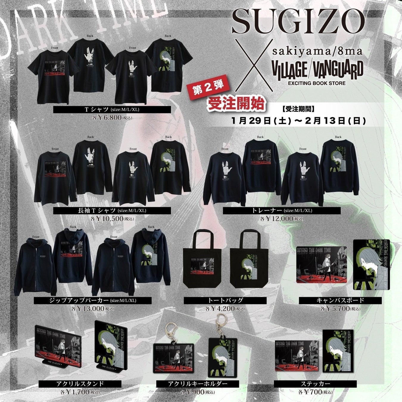 ■【SUGIZO×sakiyama第2弾】ジップアップパーカー 全2種 各¥13,000(税込)