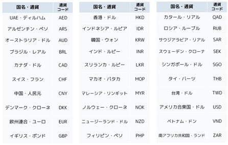 取扱い通貨: 30通貨