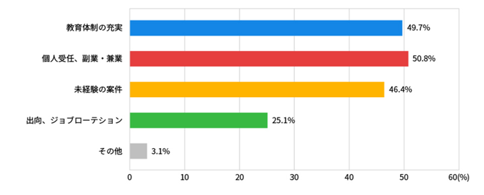Q:ご自身のキャリアを伸ばす上で、事務所、企業に求めることを教えてください(複数選択可)