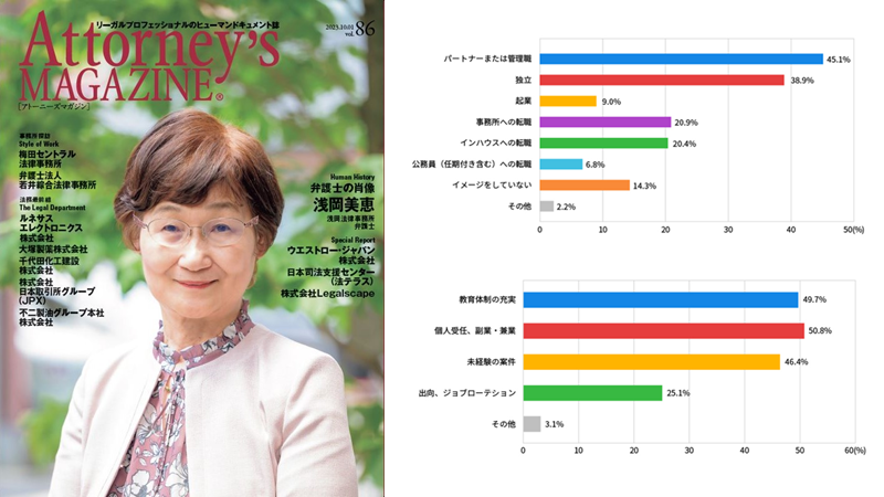 C&Rリーガル・エージェンシー社『Attorney’s MAGAZINE』アンケート調査 若手弁護士は管理職やパートナー、独立に高い意欲