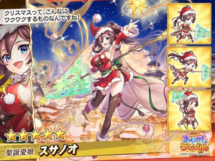 あやかし美少女RPG!DMM GAMES『あやかしランブル!』にて、クリスマス限定新キャラ「★5スサノオ」「★5ミユキ」が追加!さらに「★5アオイ」が手に入る限定クリスマスイベントも開催!