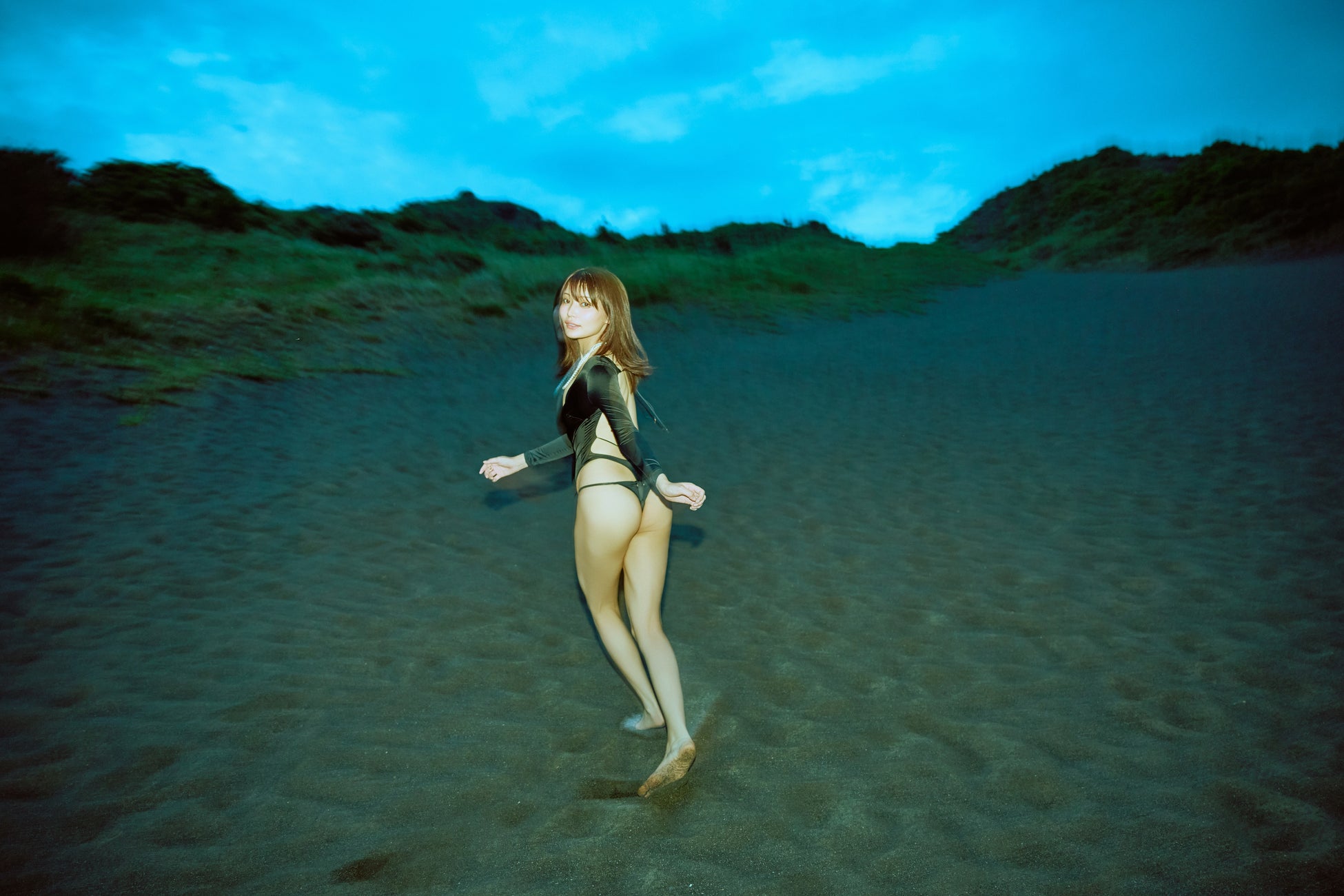 今回は「BLT MONSTER」らしく、“危なさ”を感じさせる表情を狙うことを目指して撮影を敢行。お風呂のシーンでは、泡風呂の中でトマトをかじってその汁が滴る姿を撮影したほか、日が暮れて空が薄暗くなっていく中、広大な砂漠エリアで刺激的な表情を切り取った。また、夜の海では、海の砂にまみれてもらいながら撮影を実施。あえて髪の毛も整えないようなシチュエーションで、官能的で刺激的な姿を収めていった。攻撃的な似鳥の表情に注目してほしい。