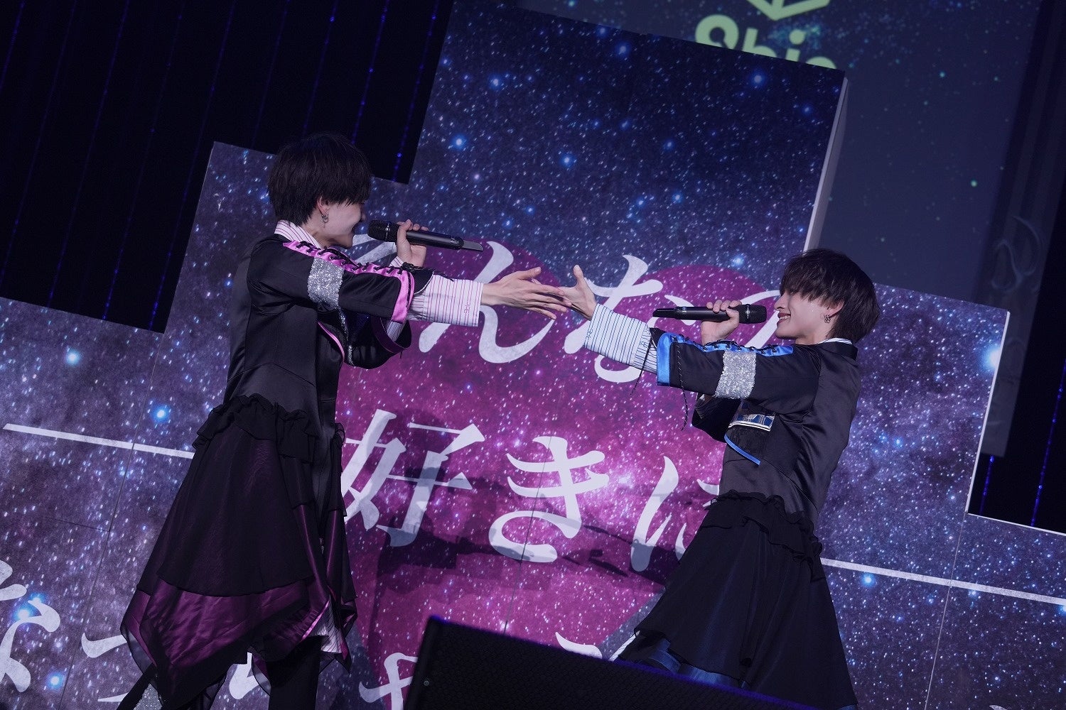 照明が落ちて転換するのかと思えば、舞台上には三波斗と海斗の姿が。ステージの右と左に分かれて、メリハリのついたクールなダンスを繰り広げる。彼らに導かれるように、他のメンバーも合流し、「creature」へ繋がれた。オリジナルメンバーに勝るとも劣らない色気を放ち、ポップで可愛いだけではない9bicを魅せつける。そのまま「secret love」になだれこみ、オラオラとした強気な表情を浮かべていた。