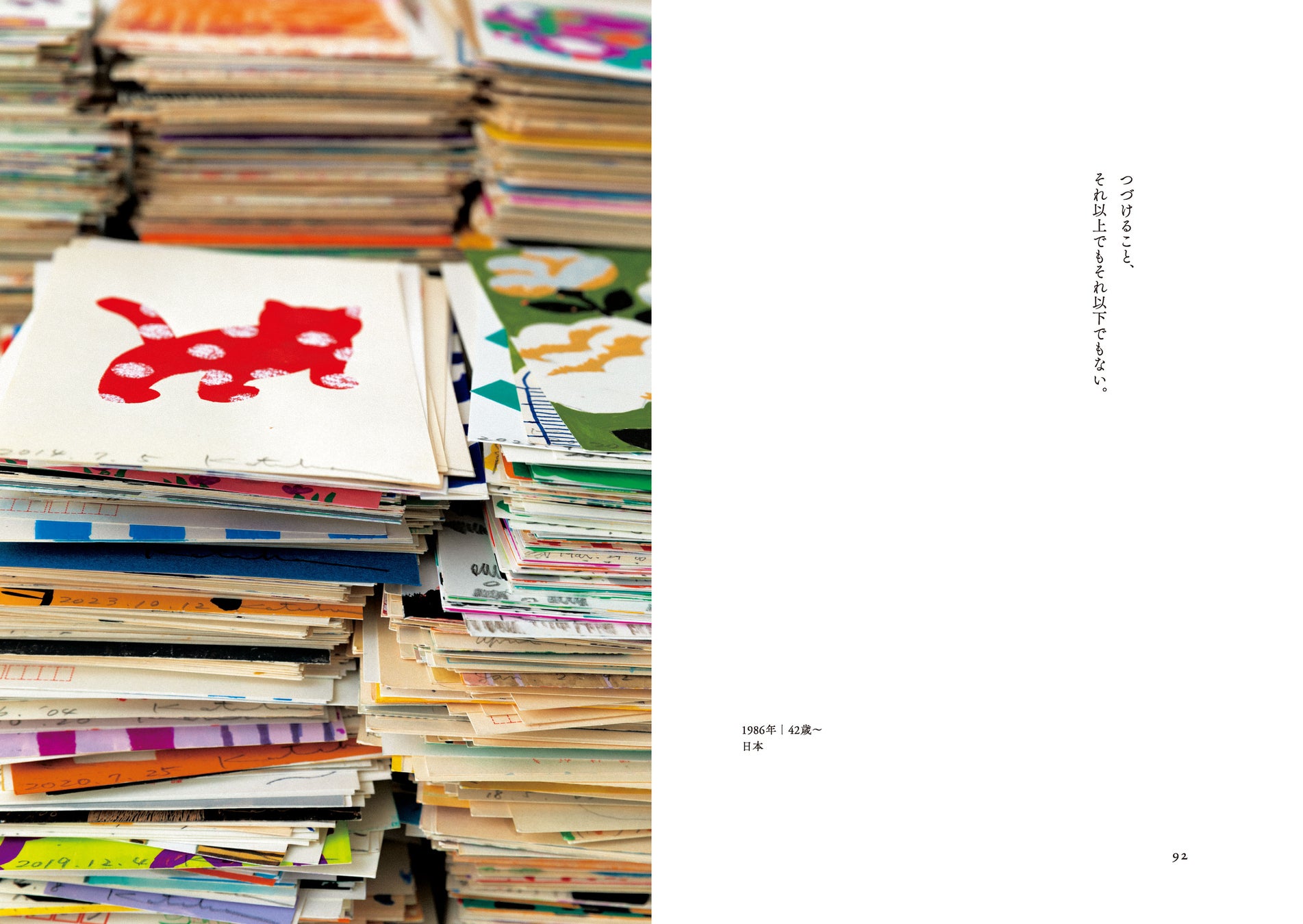 1960年代の北欧デザインを学び、ニューヨークで刺激に満ちたデザイナー生活を送り、58歳で生まれ育った京都へと戻ります。朝起きると一枚のはがきに絵を描き投函。35年間毎日続け、その数は15,000枚に。