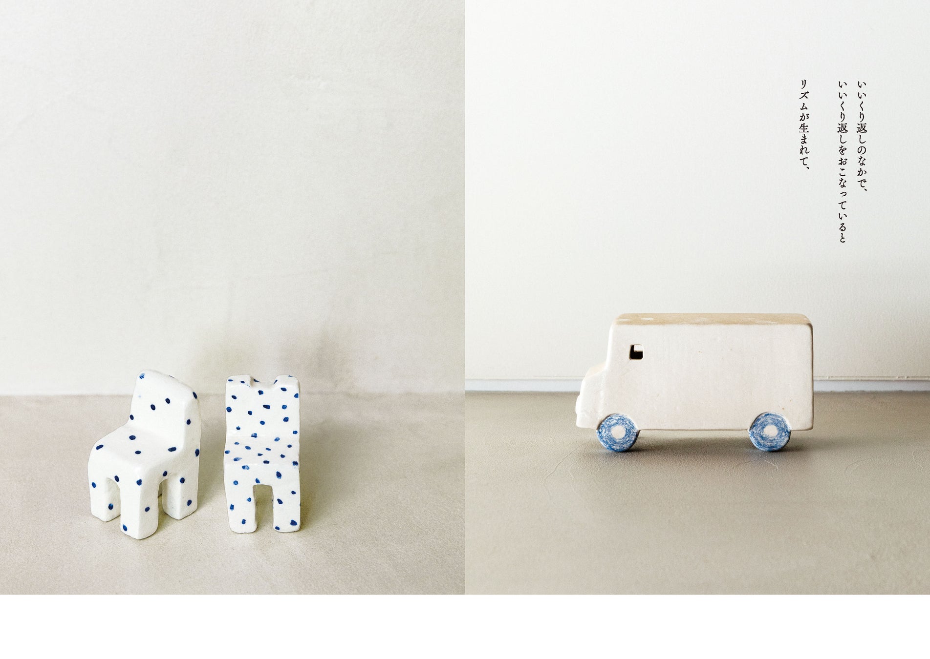 陶芸作品も収録。シャツや冷蔵庫など、つくるのは身近なもの。