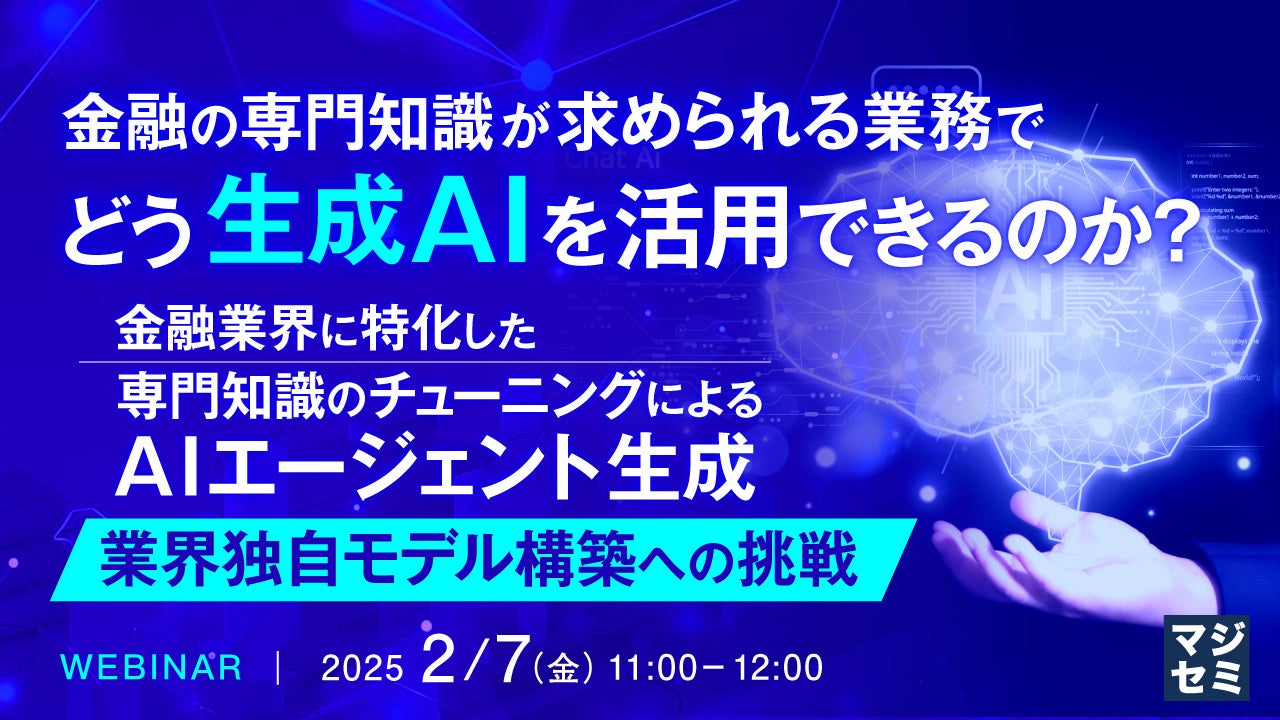 マジセミ株式会社は「金融の専門知識が求められる業務で、どう生成AIを活用できるのか?」というテーマのウェビナーを開催します。