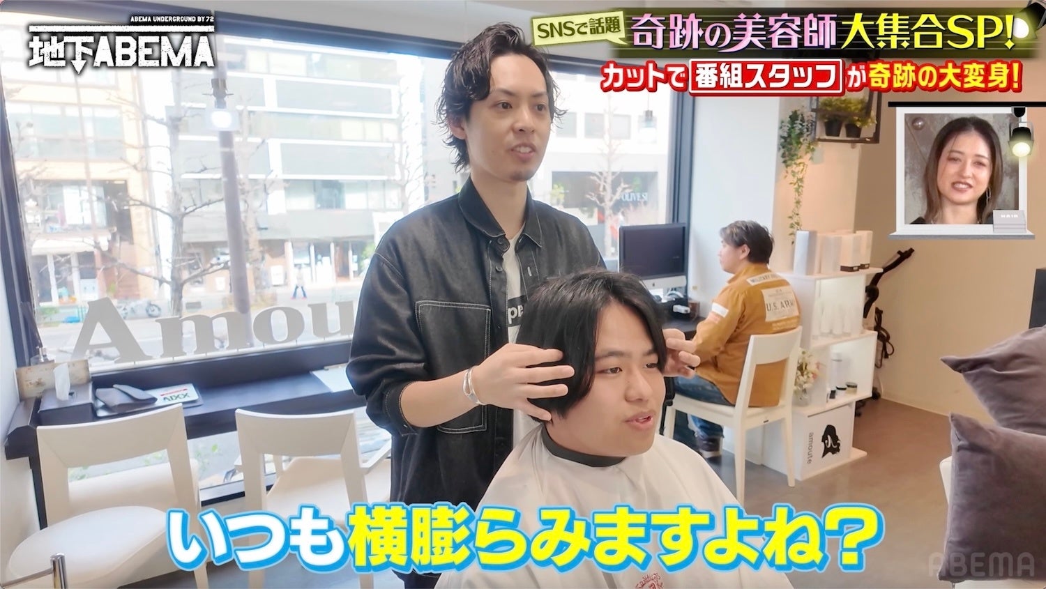 ほかにも、縮毛矯正の動画などでSNS動画総再生数3億回を突破したという「Tia.表参道」の美容師・遠井春彦さんは、「僕が担当しているアイドルのファンの方が“推しと同じ前髪にしたい”と来店。気づいたらアイドルとしてデビューしていた」と語り、スタジオは仰天。さらに、“激変動画”の総再生回数3億回超えの東京・恵比寿「Amoute」の代表・横井拓徹さんの凄腕カットを番組スタッフが体験することに。果たして気になる仕上がりは?『ななにー 地下ABEMA』#114は、現在「ABEMA」にて無料見逃し配信中です。