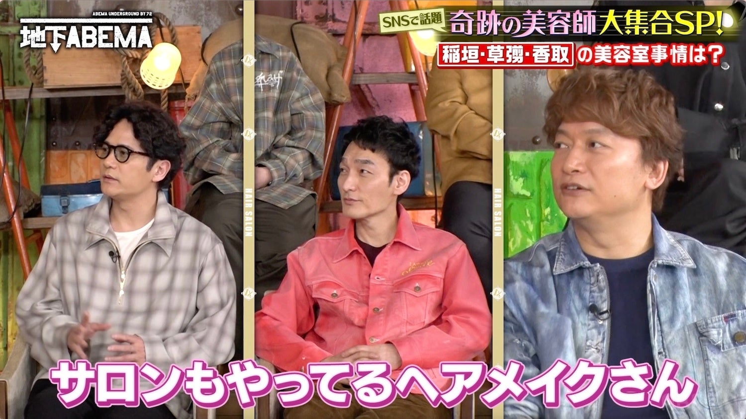 さらに番組では、EXIT・りんたろー。が稲垣、草彅、香取の美容室事情に迫る一幕も。「3人は美容室とか行かないんですか?」という質問に対し、香取が「(僕たちは)現場のヘアメイクさんの自宅とか、あと、サロンもやってるヘアメイクさん(のところ)」と回答。貸切状態でカットしてもらっているという知られざるプライベートが明らかになりました。