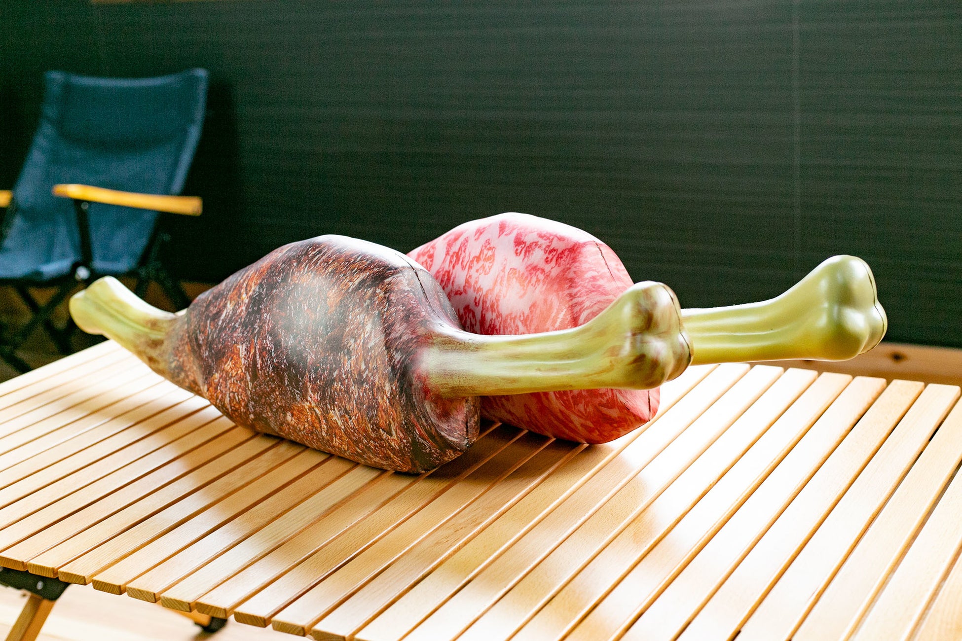 『モンスターハンターライズ』より、モンスターやオトモを精巧に表現した「ピンブローチ」と、シリーズおなじみのアイテム・こんがり肉と生肉を実寸サイズで再現した「多目的まくら」が登場!