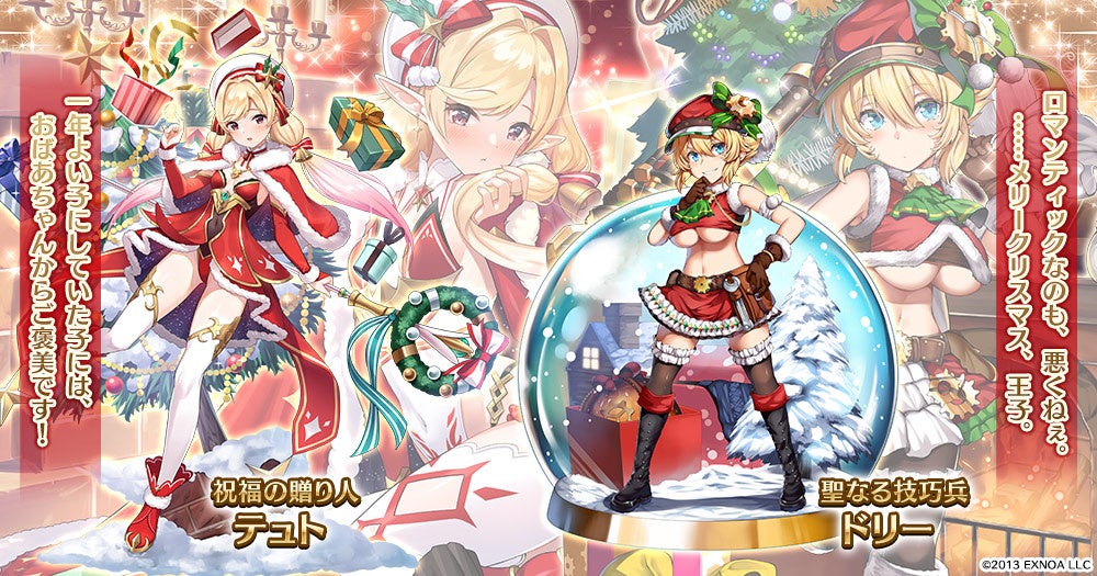 ※『祝福の贈り人テュト』『聖なる技巧兵ドリー』は、クリスマスプレミアム召喚からのみの出現となります。また、今後の更新にて再度出現する場合があります。