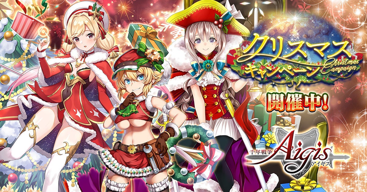 イベントミッション達成で高レアのクリスマス衣装替えユニットをGET!クリスマスキャンペーンをDMM GAMES『千年戦争アイギス』シリーズにて開催中!期間限定クリスマス召喚も開催中!