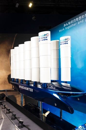 大阪・関西万博に展示されている未来の船ウインドハンター(約60分の1サイズ)
