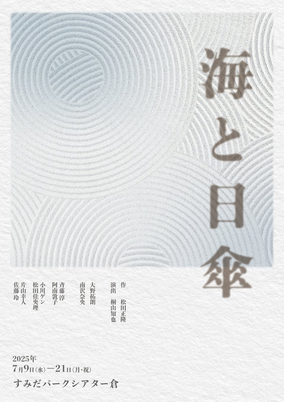 R Plays Company主催、『海と日傘』が2025年7月9日 (水) 〜 2025年7月21日 (月・祝)にすみだパークシアター倉(東京都墨田区横川1-1-10)にて上演されます。 チケットはカンフェティ(運営:ロングランプランニング株式会社、東京都新宿区、代表取締役:榑松 大剛)にて6月8日(日)20:00より発売開始です。