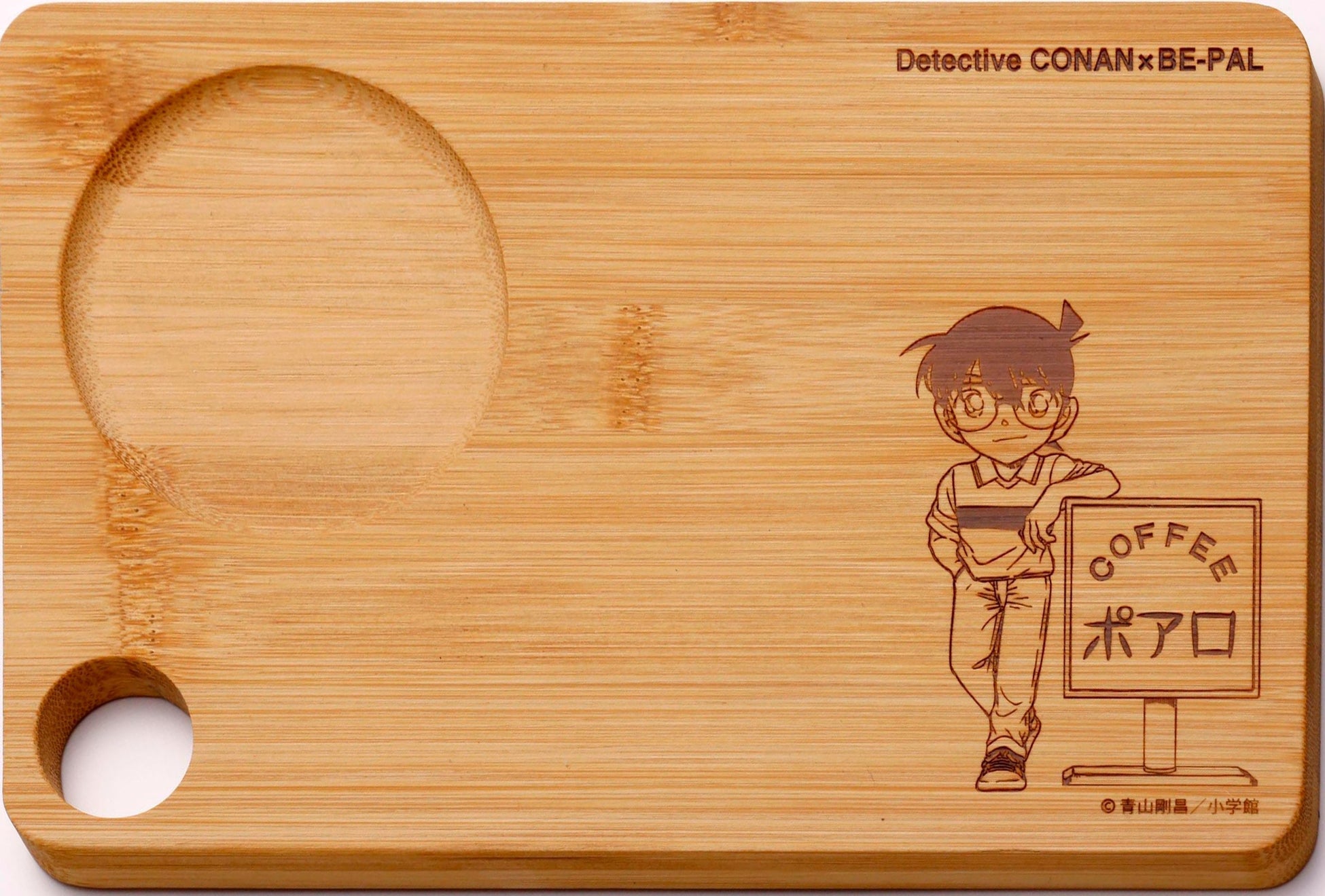 BE-PAL5月号の特別付録は、コナンの原画イラストが刻印された『名探偵コナン「喫茶ポアロ」カッティングボード』。抗菌・抗ウイルス作用がある竹材で、シェラカップやマグがずれにくい凹み付き。家でもキャンプシーンでも大活躍するはずです。
