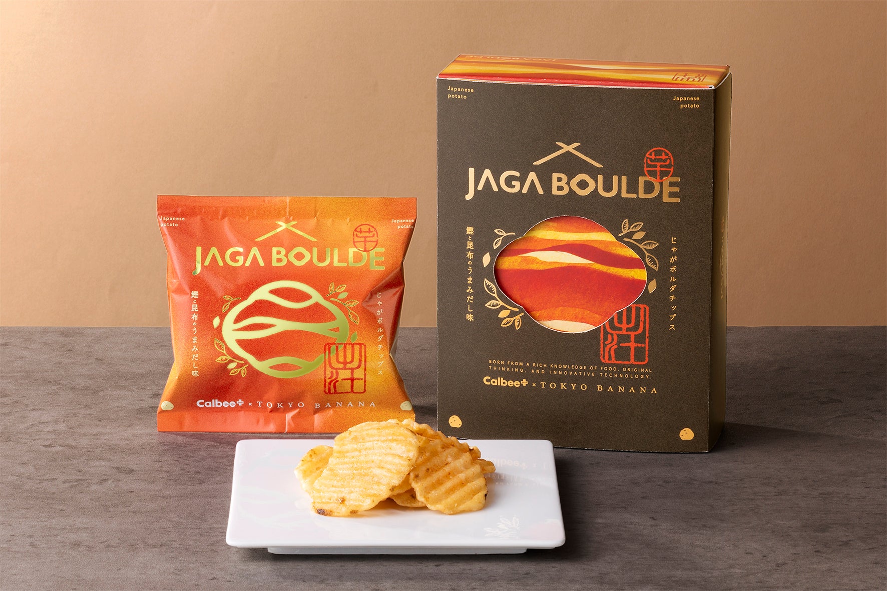 カルビー+と東京ばな奈のコラボから誕生した進化系ポテトチップス「じゃがボルダ」は、厚切りチップスに“おいしさのしずく”を吹きかけ、外はパリッ、中はサクサク、手も汚れにくい独自製法が特徴です。和食の名店「広尾 小野木」監修で素材の旨味を追求し、鰹と昆布のうまみだし味をはじめ、黄金コンソメ味や貝だしとあおさ味など多彩なフレーバーを展開。季節限定の商品も登場するので、ぜひチェックしてみてください。