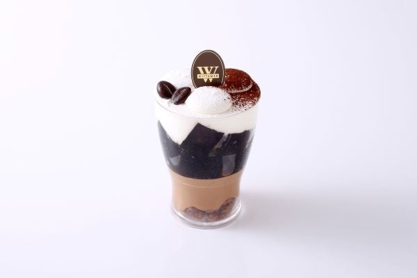 コーヒーゼリーとクリーム、ほろ苦いコーヒー風味のチョコレートムースを重ねました。甘さ控えめのクリームがコーヒーの味わいを引き立てる、大人のグラスデザートです。