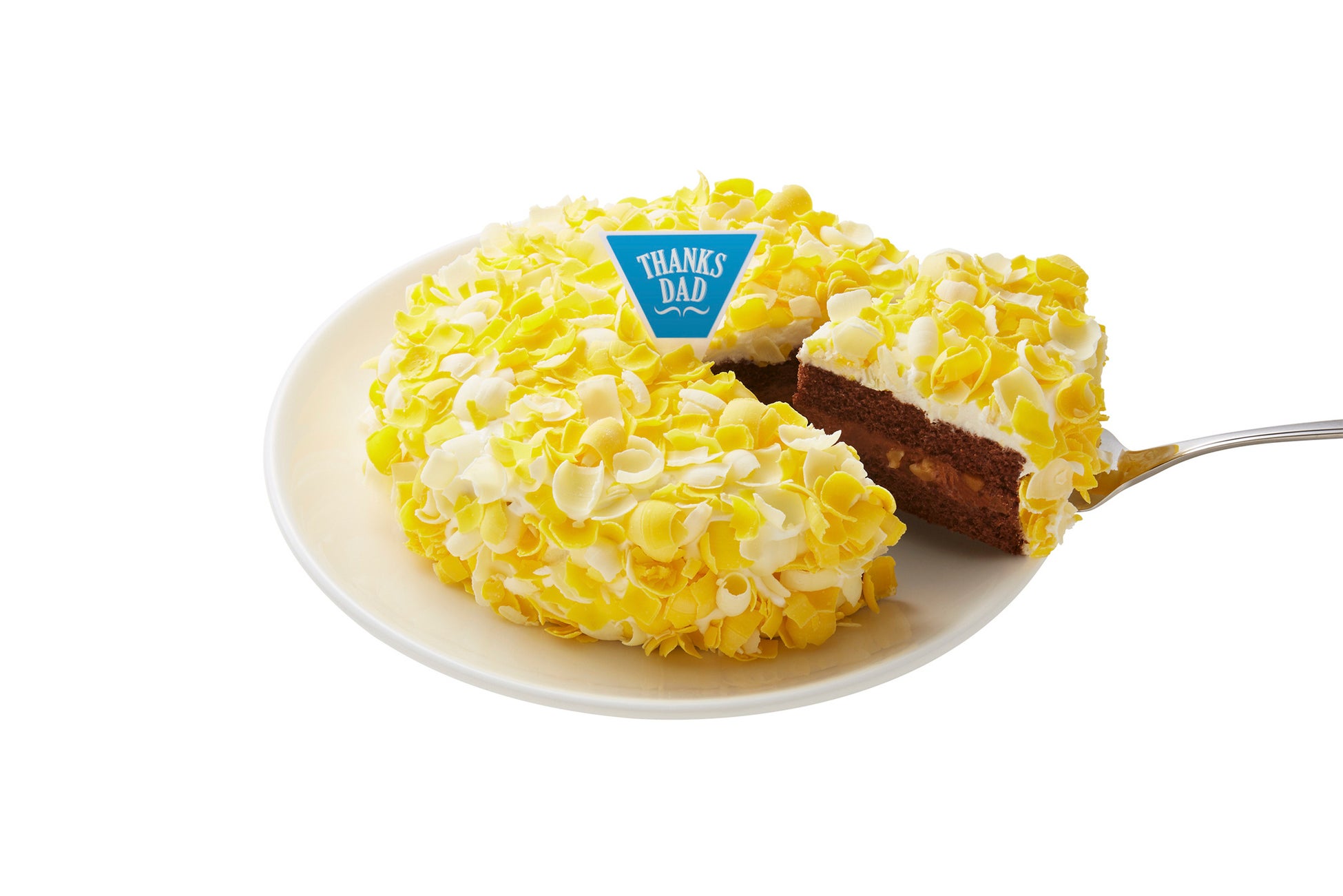 チョコレートスポンジで、チョコレートクリームとウォールナッツをサンドしました。黄色の花のような華やかなケーキです。