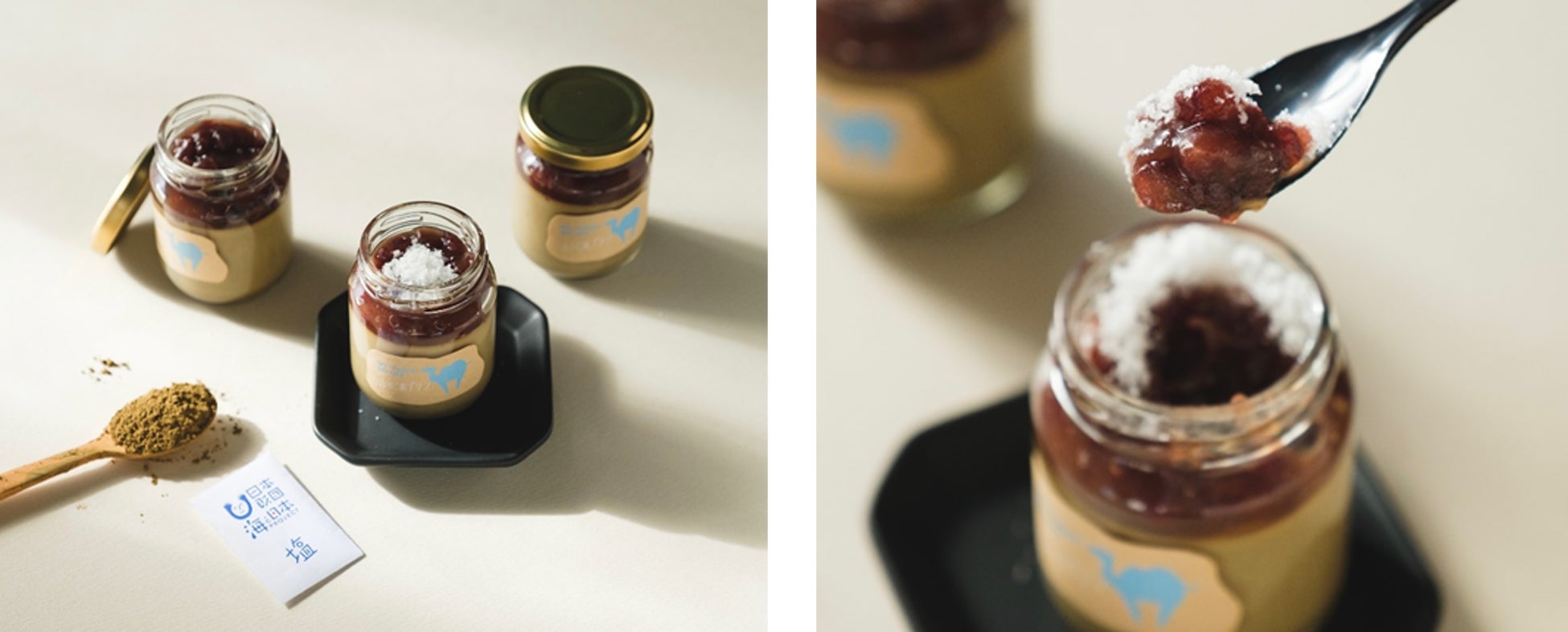 「Totto PURIN」が手がける「ほうじ茶塩プリン」は、天日乾燥後に釜炊き法で煮詰めて作られた日本海の藻塩を振りかけて食べるプリンです。プリンは、鳥取県で育ったお茶から作られるほうじ茶プリンをベースに、丹波大納言小豆を使用した飴子に、日本海の藻塩をかけて食べていただきます。塩が上手く味を決めることで、よりスイーツも美味しくなることが体験できるプリンです。綺麗な日本海があるからこそ提供できるプリンを目指し、たどり着いた、日本海の藻塩のふりかけプリンになっています。