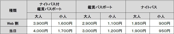 【料金】上記、ナイトパスまたはナイトパス付鑑賞パスポートのとおり
