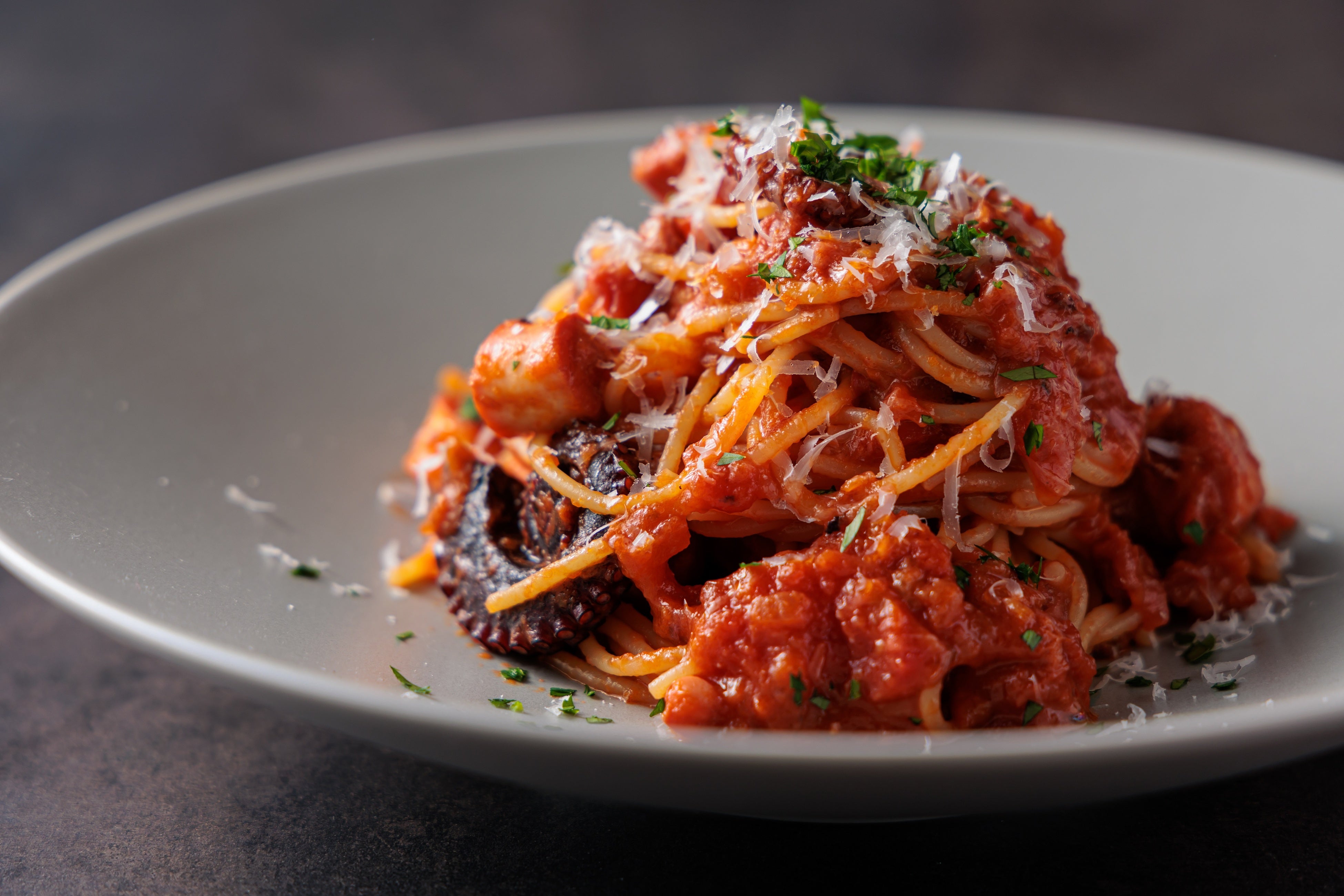 ■メニュー・料金:「石川県産タコのルチアーナ風 トマトスパゲッティ」 2,300円/