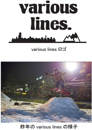 さらに、ナイターイベントとして昨シーズン大好評を博したムラサキスポーツ主催のイベント「various lines '24」を開催。当日はムラサキスポーツ所属ライダー赤田佑弥プロ等が登場し、MCやお客様と一緒にライディングすることでウインターシーズンの到来を盛り上げます。