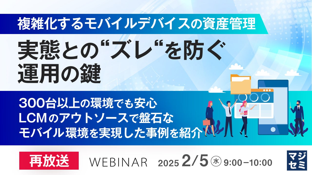 マジセミ株式会社は「【再放送】複雑化するモバイルデバイスの資産管理、実態との“ズレ“を防ぐ運用の鍵」というテーマのウェビナーを開催します。