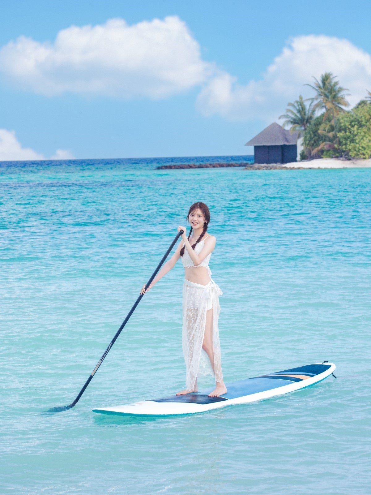 ■撮影地は、青と光に包まれたモルディブ!人生初のSUPにも挑戦