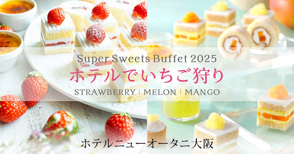 ホテルニューオータニ大阪では、「SATSUKI LOUNGE」にて開催中のいちごスイーツビュッフェに、初夏の季節限定でメロンとマンゴーのスイーツが仲間入りし、全20種のスイーツをお愉しみいただける『スーパースイーツビュッフェ2025~ホテルでいちご狩り~』を、2025年5月7日(水)~25日(日)の期間限定で開催します。