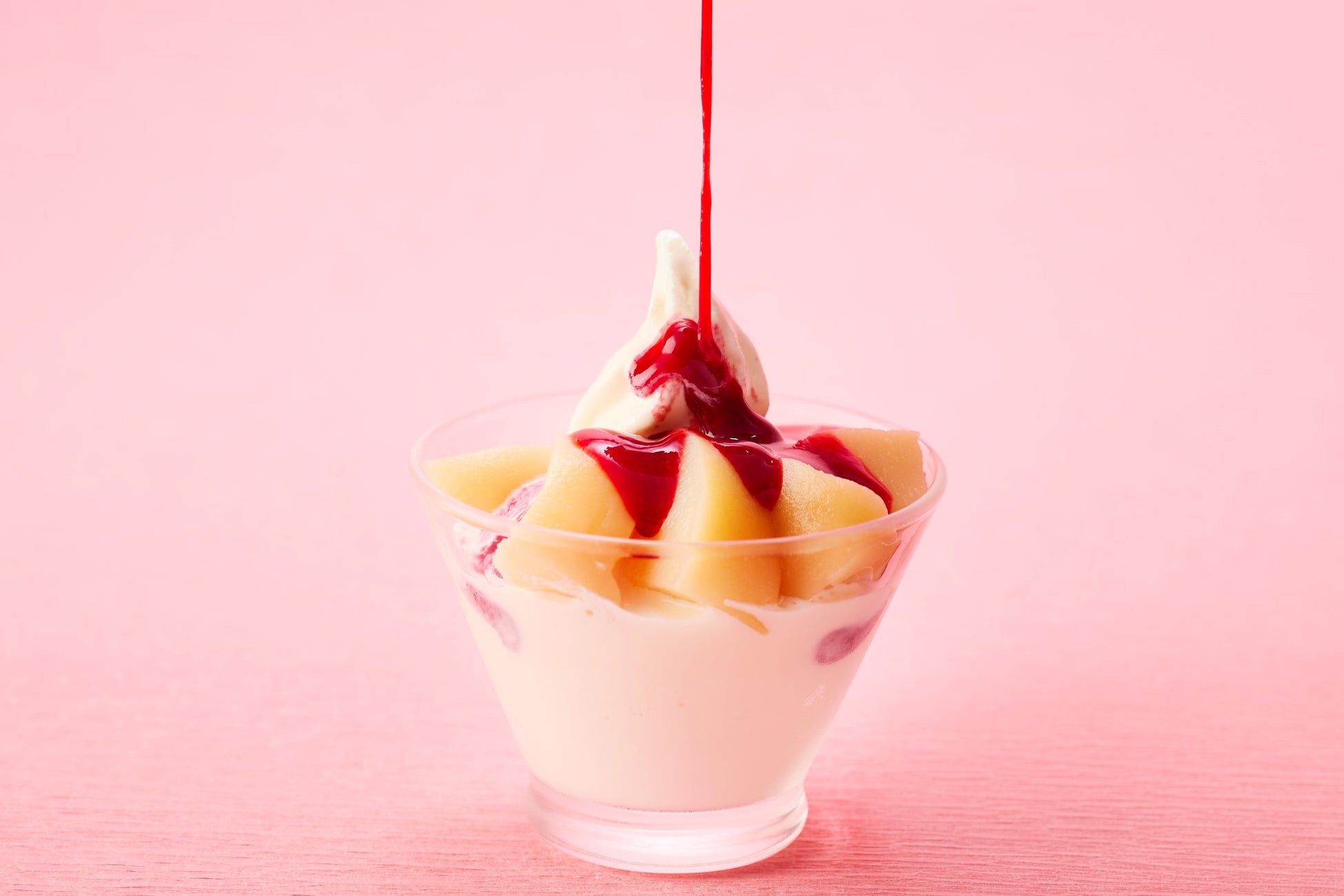 バニラアイスクリームにピーチのコンポートを贅沢にのせ、仕上げにラズベリーソースをあわせたイギリス・ロンドンで誕生した「ピーチメルバ」が新登場。ピーチの甘酸っぱさとアイスクリームの甘み、そしてラズベリーソースの酸味が絶妙にマッチした季節限定スイーツを心ゆくまでご堪能ください。
