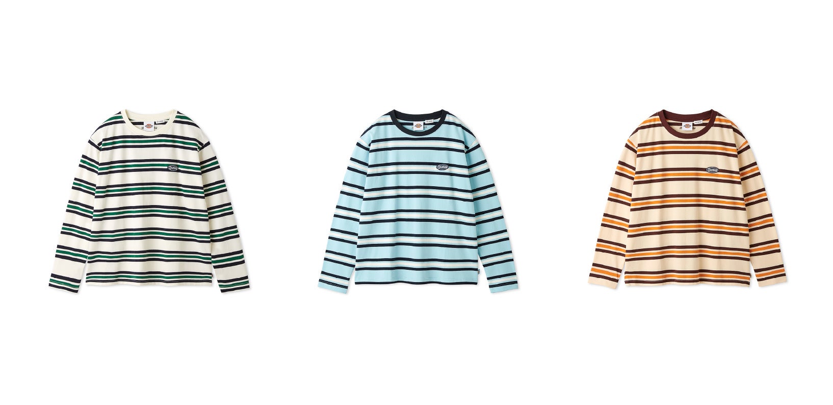 アイコニックなロゴをプリントしたラグランTシャツ、チャーミングな配色のボーダーのロンTなど全5型をラインアップ。