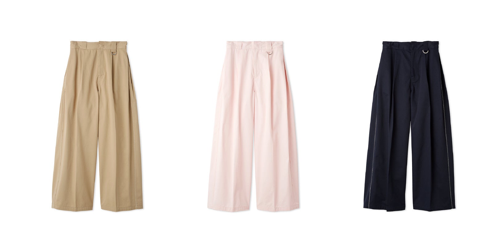 定番のカラーに加え春らしく柔らかなピンクをチョイスしたツイルのワイドパンツやジャンスカ、