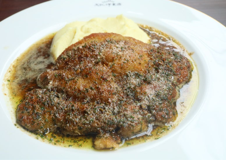 秘伝のアンチョヴィバターソースを使用し欧州カツのように仕上げた文化洋食店の特別メニュー