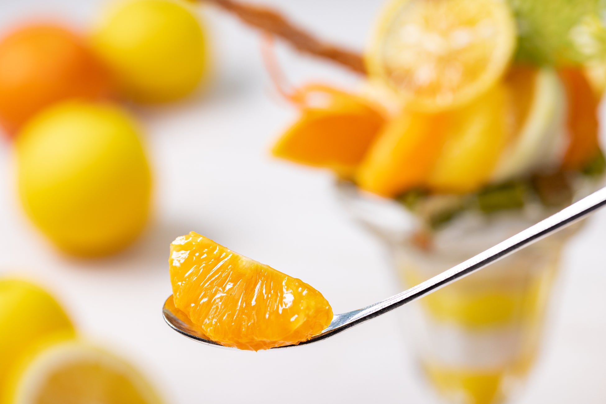 さらに、パフェに使用するフレッシュの柑橘は加工せず、果物本来の美味しさや風味の違いを比べていただけるよう「皮付き、内果皮付き、果肉のみ」の3種をのせました。まずはたっぷりと伊豆産柑橘をお楽しみください。