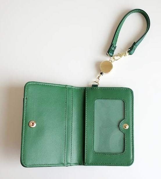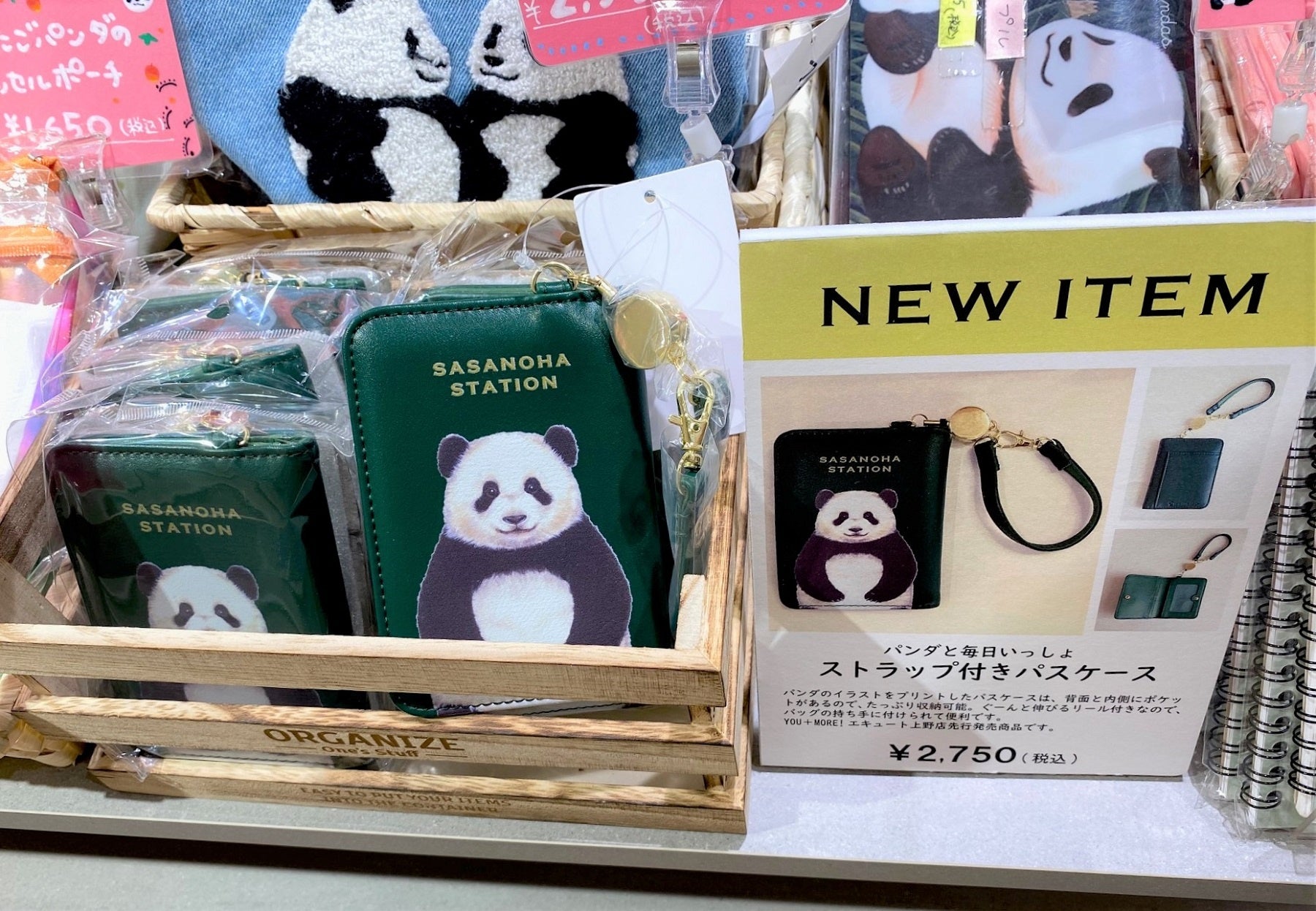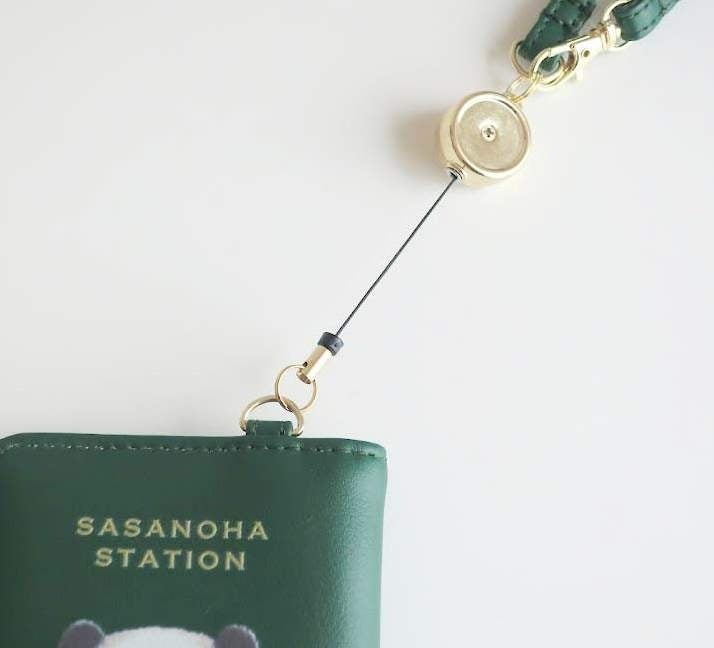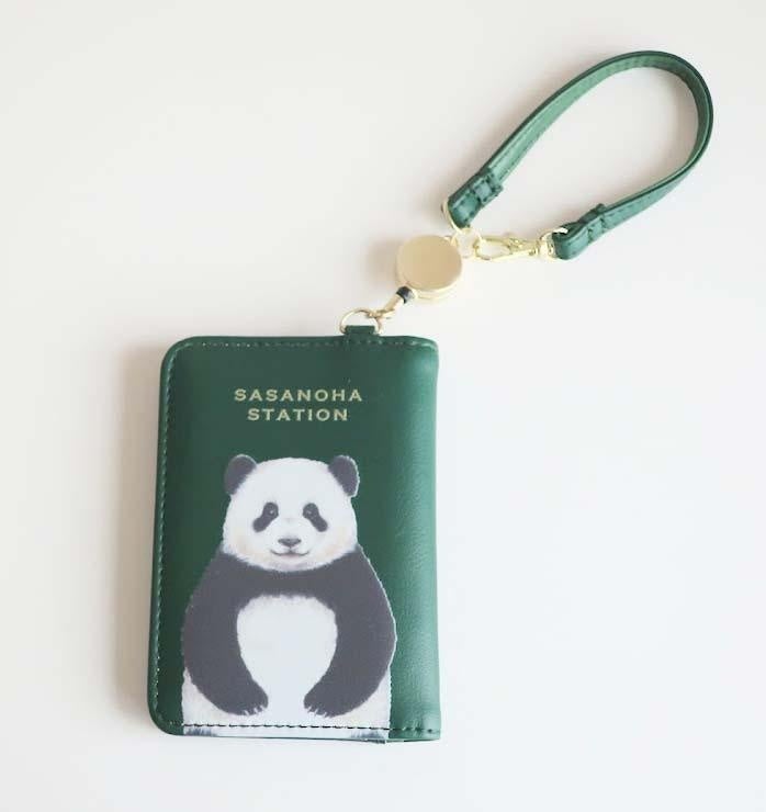 通勤や通学で、毎日使うパスケースに、パンダがこちらを見つめる愛らしいデザインが新登場。笹をイメージしたグリーンの色味にゴールドカラーの金属パーツが、上品で大人な雰囲気です。ストラップをシュルッと伸ばせば、改札でのカードのタッチもスムーズに。定期券はもちろん、内側にはよく使うカード類もしっかり収納できて便利です。