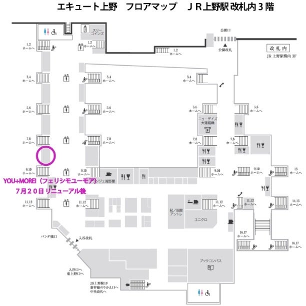 ・場所/東京都台東区上野7-1-1 JR東日本上野駅改札内 3F