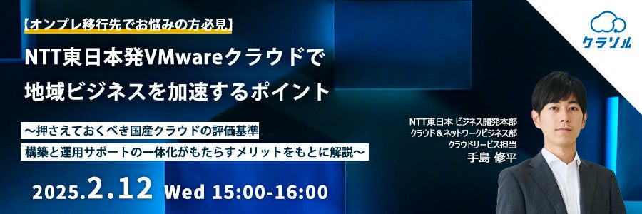 マジセミ株式会社は「【オンプレ移行先でお悩みの方必見】NTT東日本発VMwareクラウドで地域ビジネスを加速するポイント」というテーマのウェビナーを開催します。