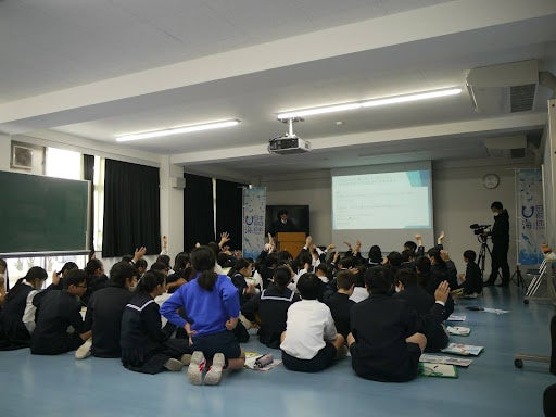 12月5日(木)、長門市の山口県水産研究センターの阿武遼吾専門研究員が山口大学教育学部附属山口小学校を訪れ、5年生の児童65名の前で特別授業を行いました。阿武研究員は「アマダイを調べ隊」でも講師を務めた若手研究者。ご自身も同校の出身ということで、小学校時代の写真を交えた自己紹介で教室を沸かせ、教室内はすっかり和やかな雰囲気に。