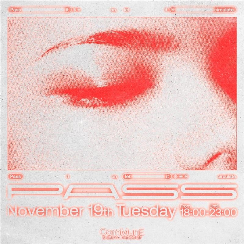 渋谷宇田川町のコンセプトショップ・BOYオーナーの奥冨直人と、DJ、オーガナイザーのarowキュレーションによる体験型イベント"PASS"が1年ぶりにカムバック。今回はライブアクトの出演、また最先端のショップによるPOP UPの出店も予定。映像作家と音楽アーティストのコラボレーションによる空間演出で、渋谷PARCOの屋上に位置するComMunEを今までにない非日常空間に仕立て上げる。