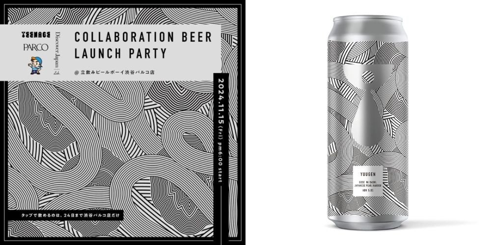 渋谷PARCOの5周年を記念して渋谷PARCO、立飲みビールボーイ、Discover Japan、そしてTeenage Brewingがタッグをくんで創りあげたコラボビール『Yuugen(Gose W/Dashi, Japanese Pear, Kabosu)』のローンチPARTYを開催。当日はTeenage Brewingの「音楽はビールだ」の言葉通りDJによる音楽とビールのコラボレーションを実現。