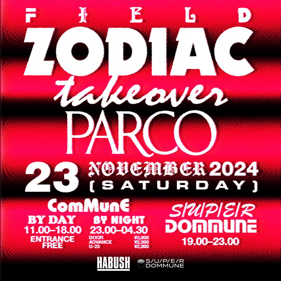 世界中のダンスミュージックファンから高い信頼を得る野外フェス「Rainbow Disco Club 」との共同制作による新プロジェクト「field」を始動。第一弾は、インドネシア・ジャカルタで音楽、ファッション、アートの3つのカルチャーを軸に活動する「ZODIAC」(ゾディアック)を招聘した「ZODIAC TAKEOVER PARCO」を3部構成で開催。渋谷PARCO 5周年に合わせ、街を一望できる10F ComMunEをメイン会場として、昼はDJ/マーケットイベント「BY DAY」、夜はオールナイトクラブパーティー「BY NIGHT」。そのほか、9F SUPER DOMMUNEでは本企画と連動した特別プログラム配信が予定されるなど、1日を通して多様な楽しみ方ができる都市型カルチャーイベント。