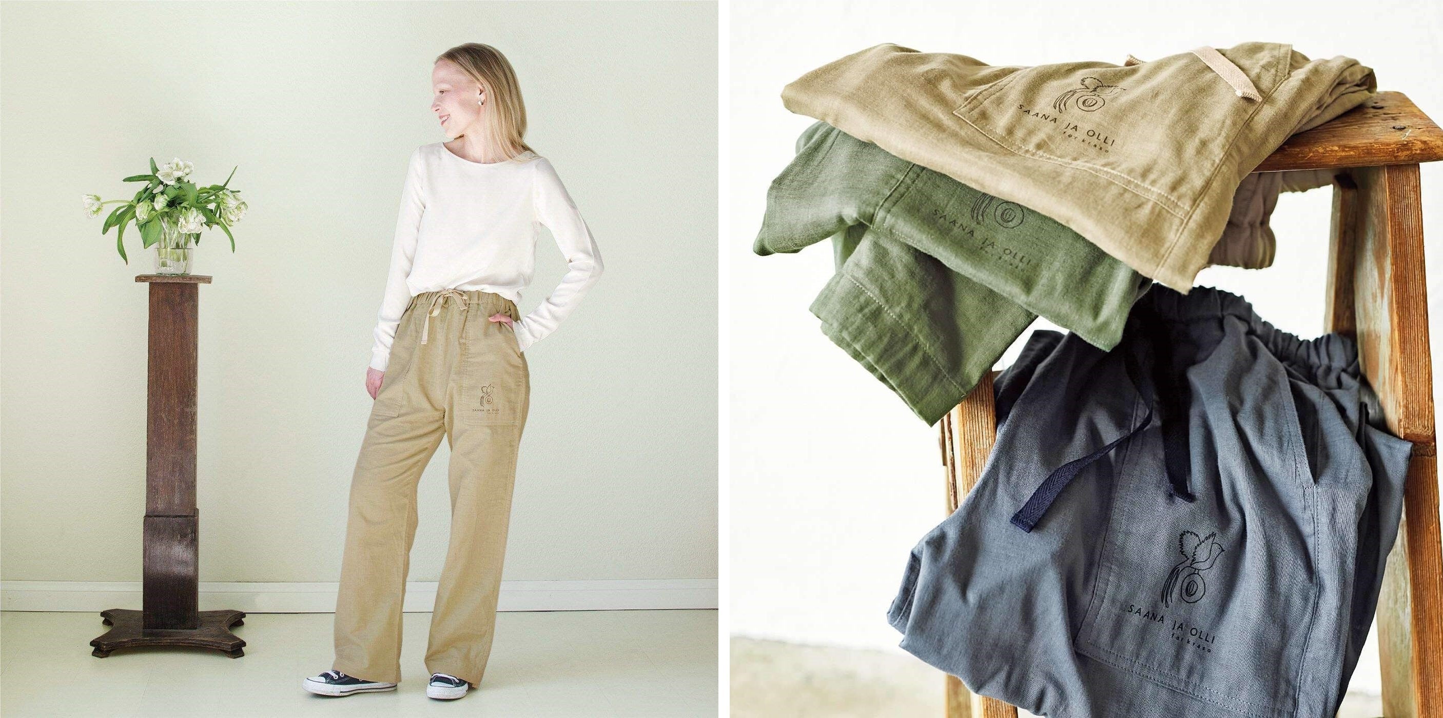 「ダブルガーゼ素材の2-WAYパンツ」など、自然体で過ごせるアイテムがフェリシモ「SAANA JA OLLI for kraso[サーナ ヤ オッリ フォー クラソ]」から新登場