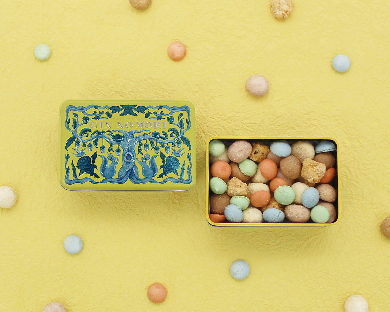 森に息づく木々や木の実を使った6種類の焼き菓子とナッツのアソート缶。クロモジ・クマ笹・とちの実・松かさ・ヒノキ・もみじなどの、自然豊かな森の中に店舗を構える恵那本店ならではの素材を使用しています。